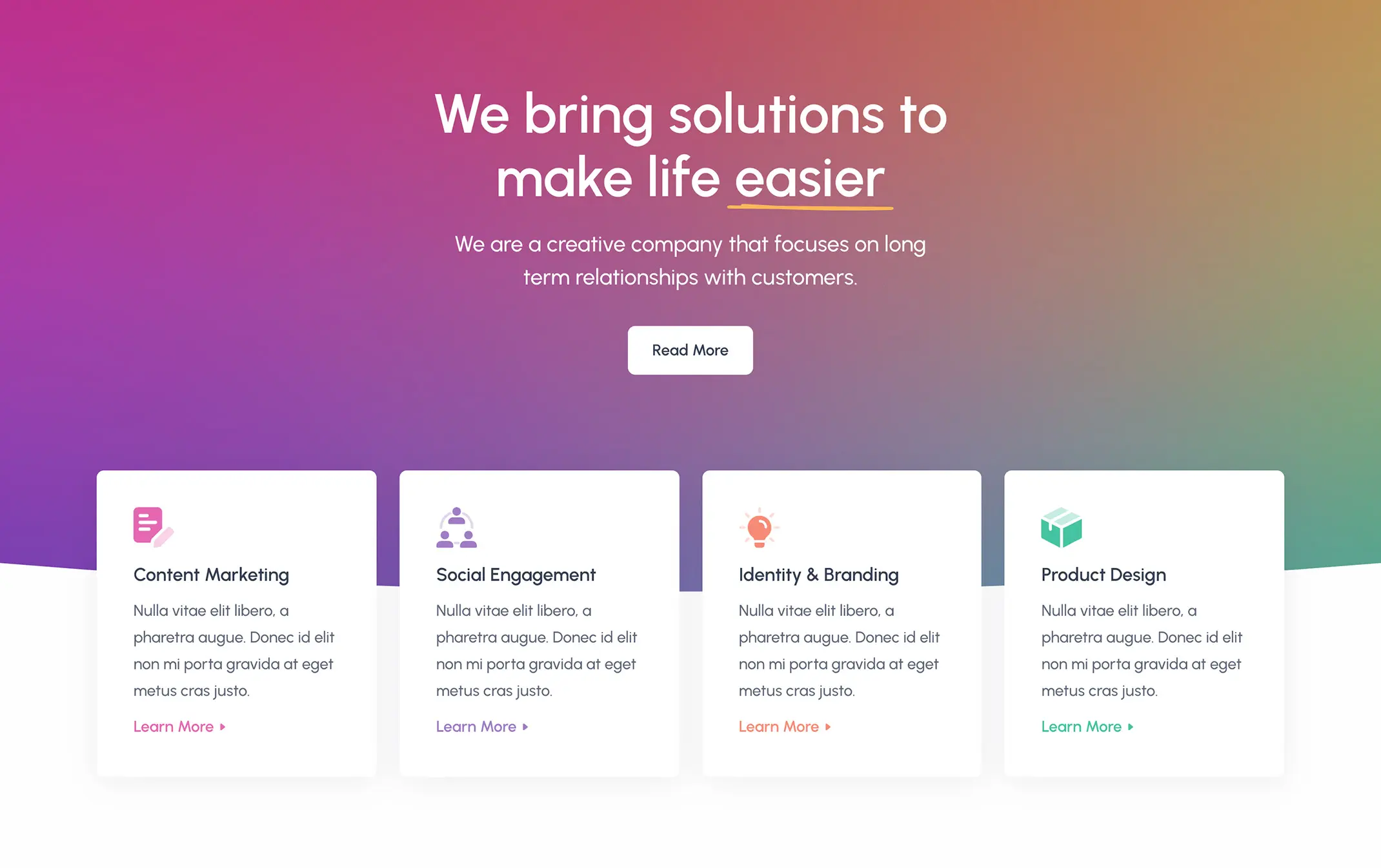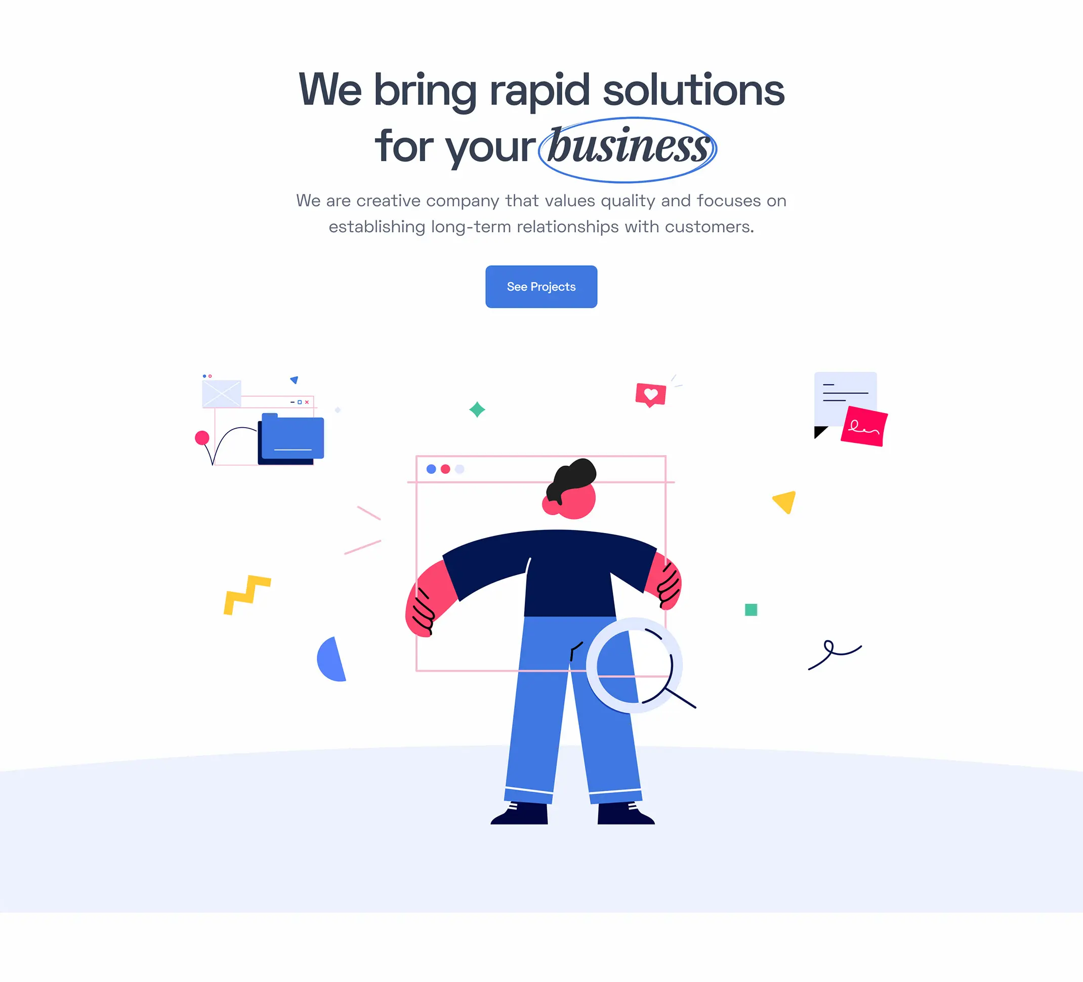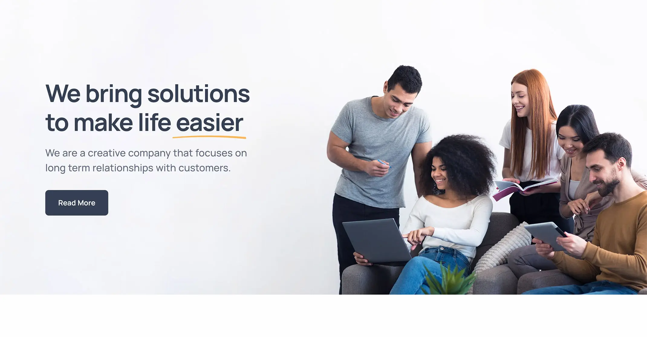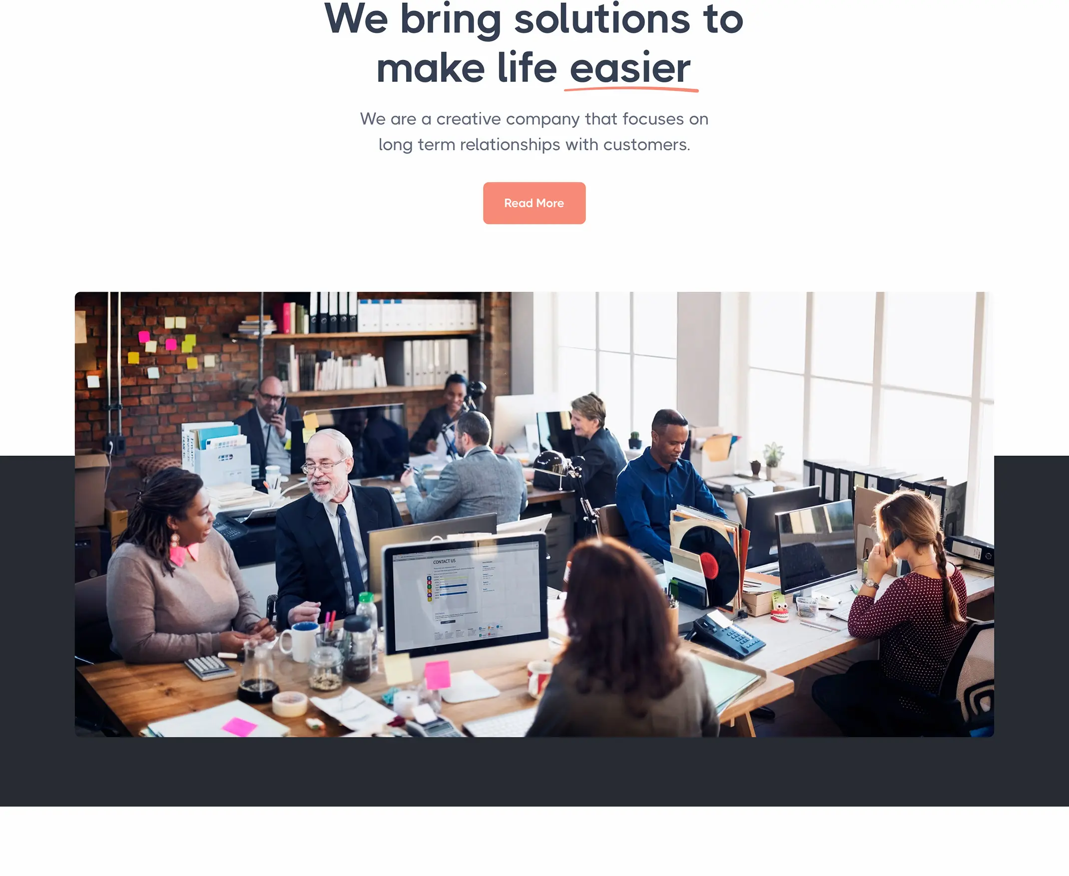 subtitle: "We are a creative company that focuses on long term relationships with customers."