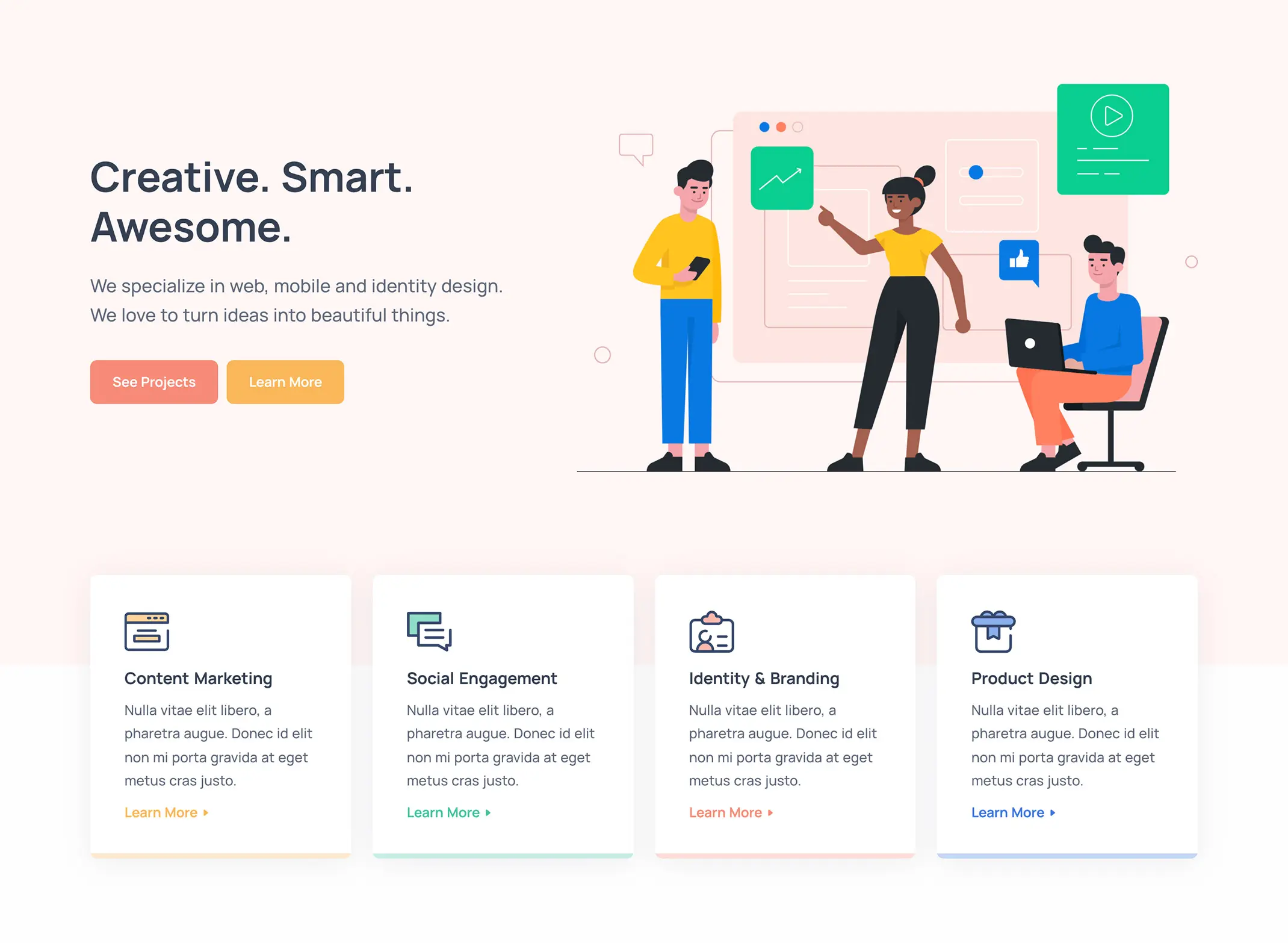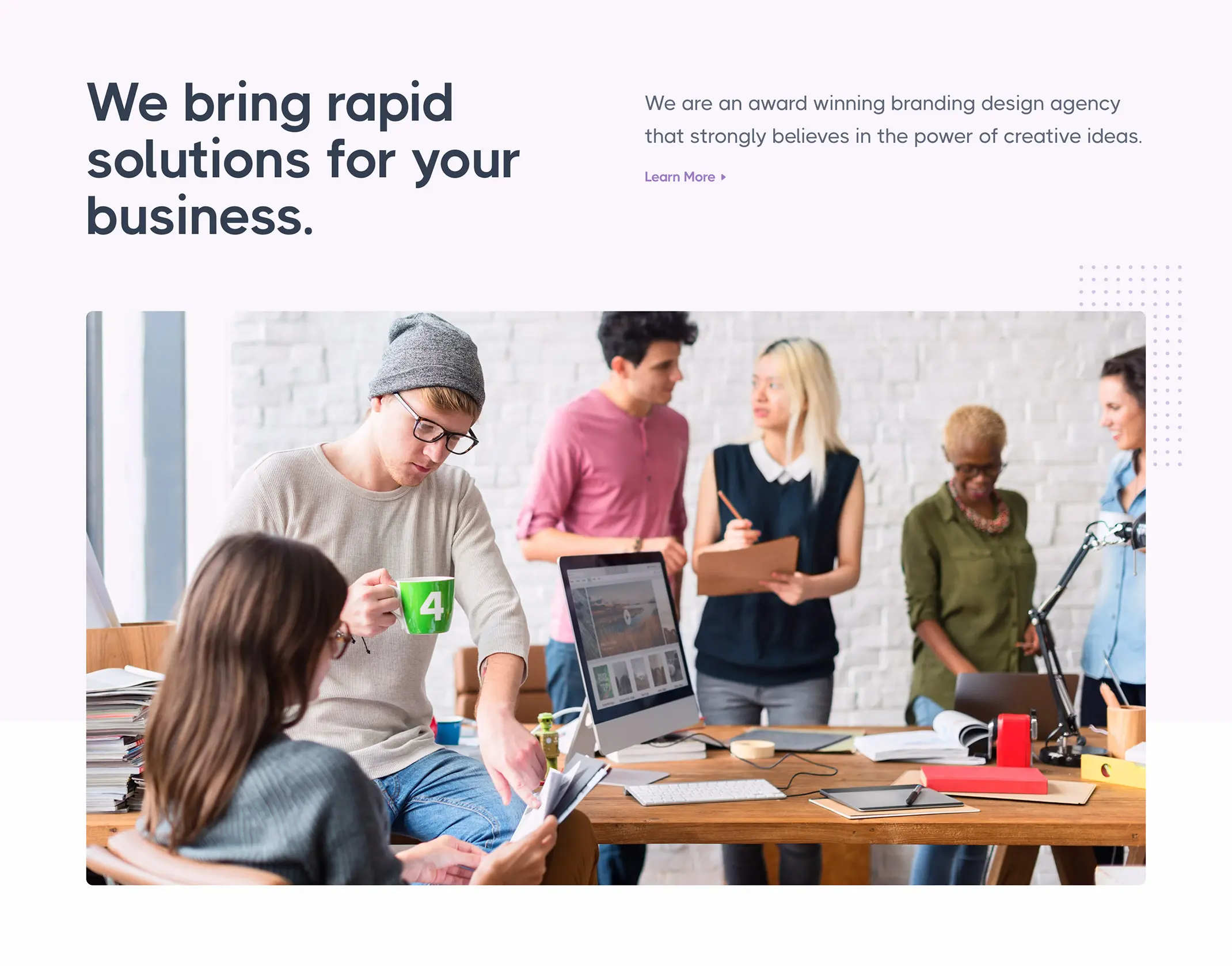 subtitle: "We are an award winning web & mobile design agency that strongly believes in the power of creative ideas."