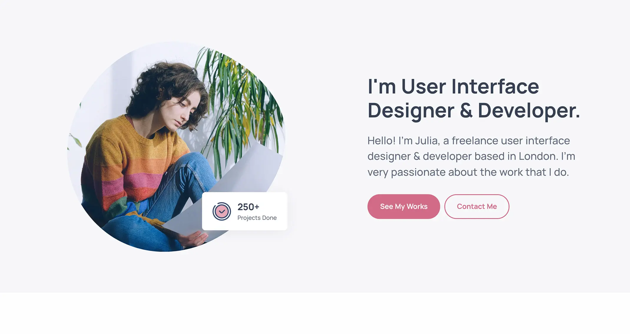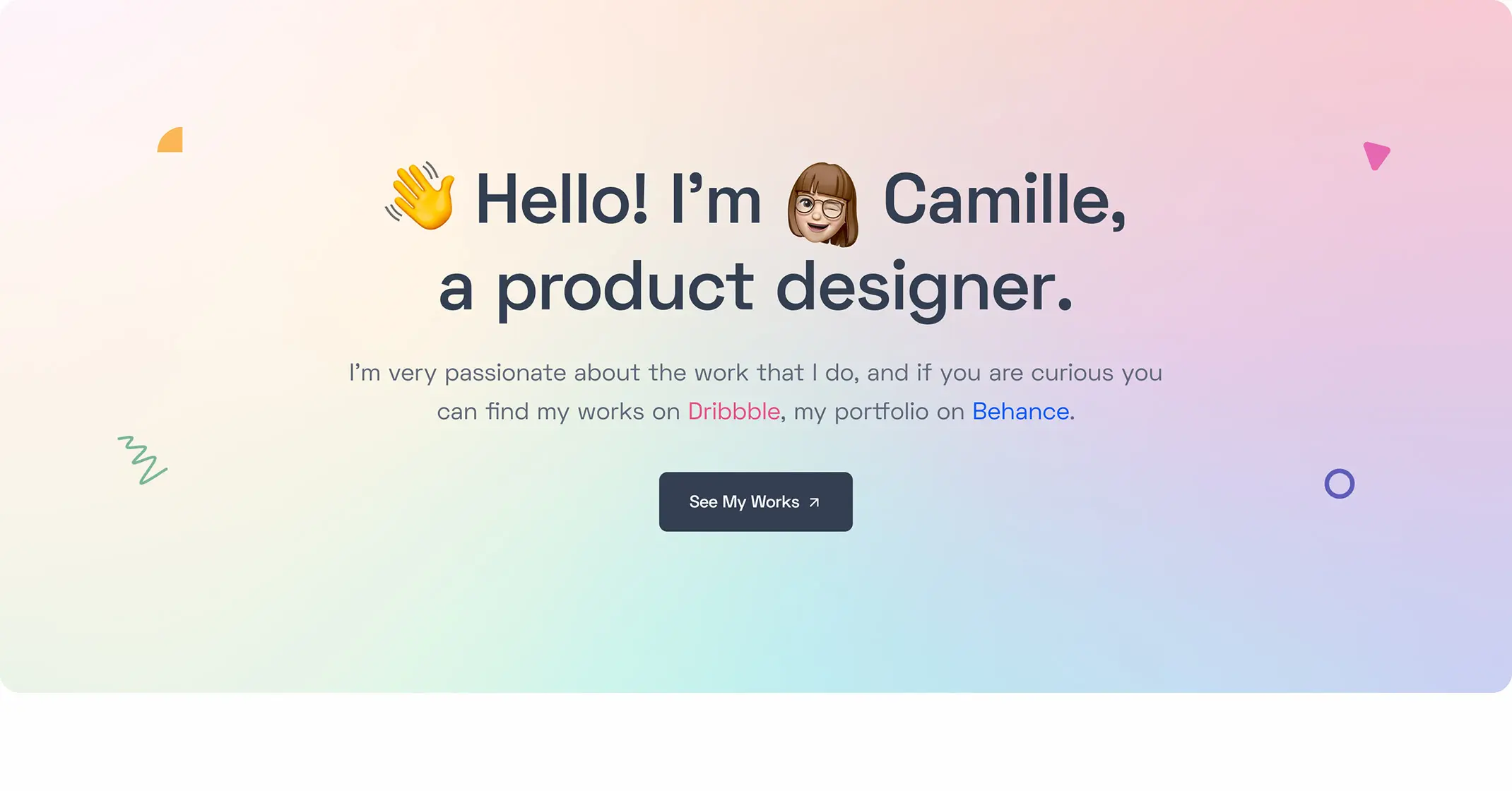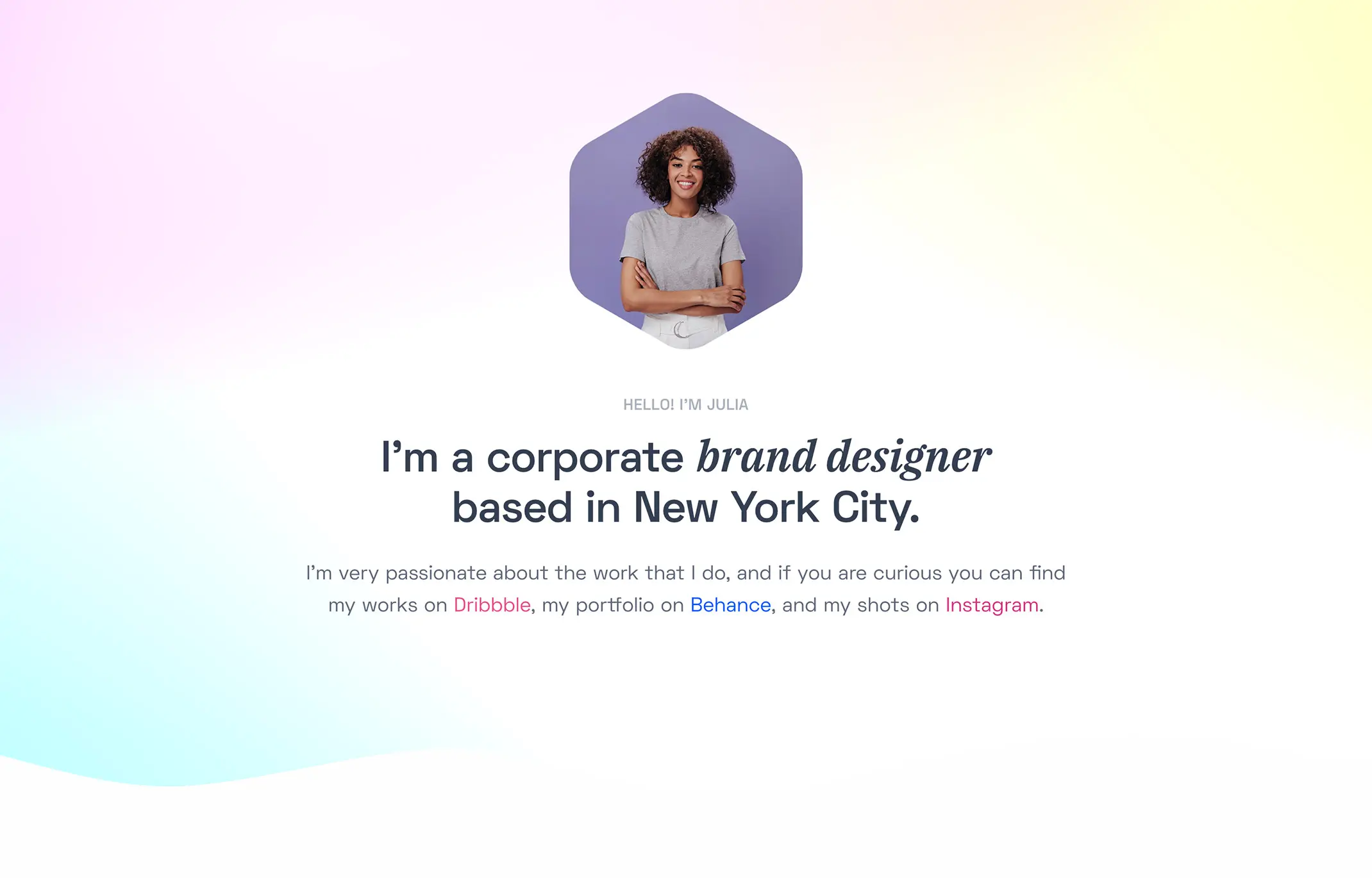 subtitle: "I'm very passionate about the work that I do, and if you are curious you can find my works on Dribbble, my portfolio on Behance."