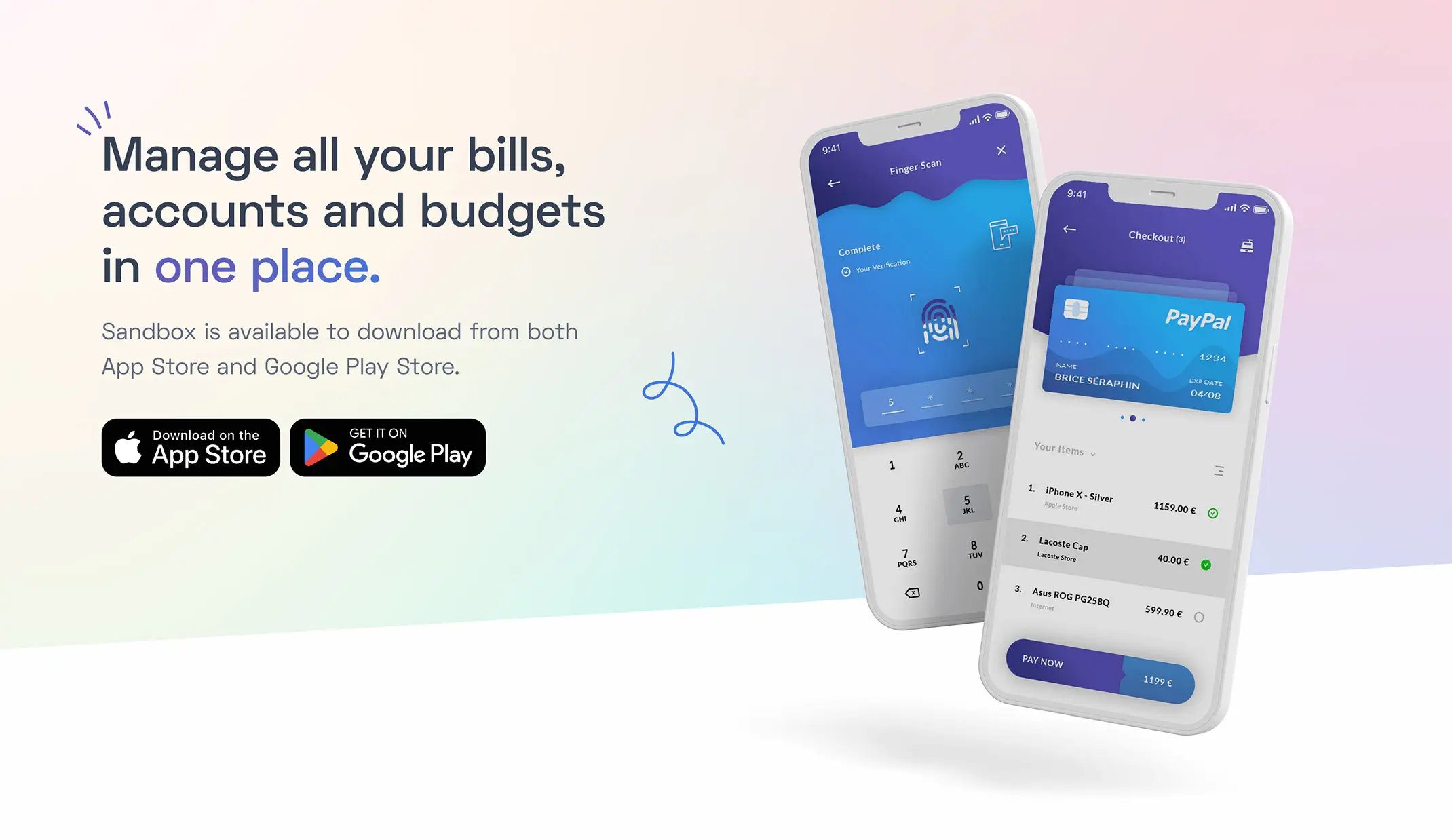 subtitle: "Sandbox is available to download from both App Store and Google Play Store."