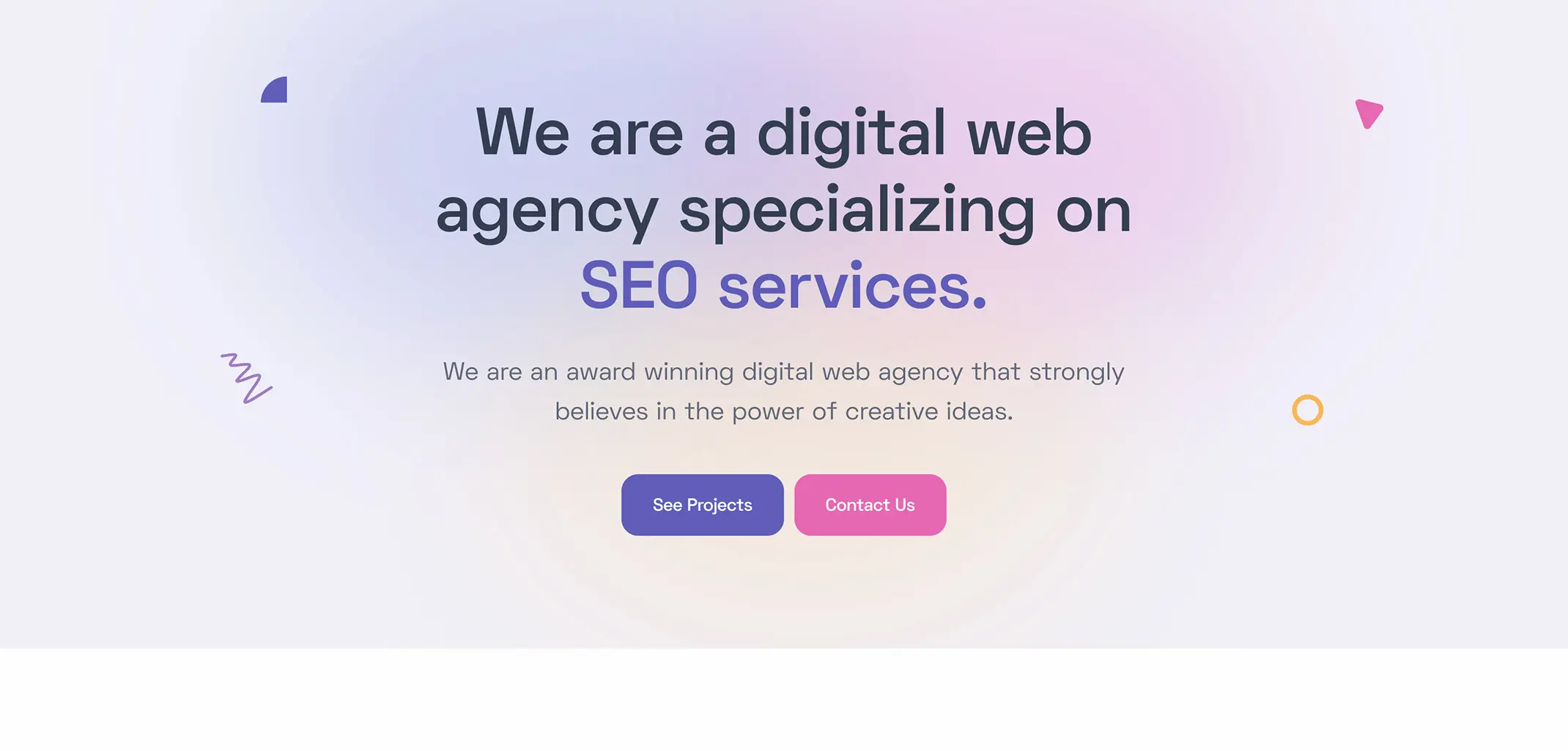 subtitle: "We are an award winning digital web agency that strongly believes in the power of creative ideas."