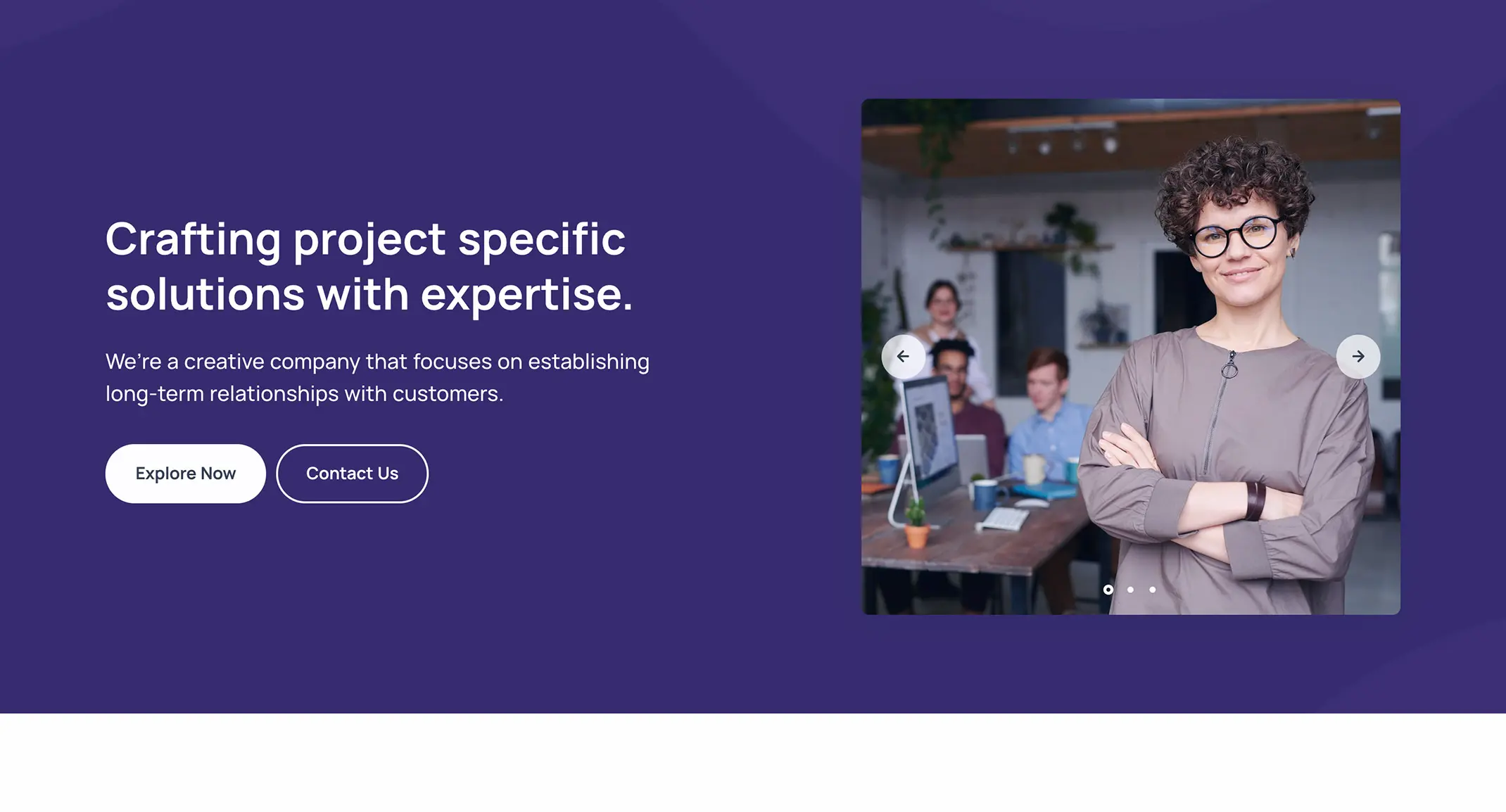 subtitle: "We are a creative company that focuses on long term relationships with customers."