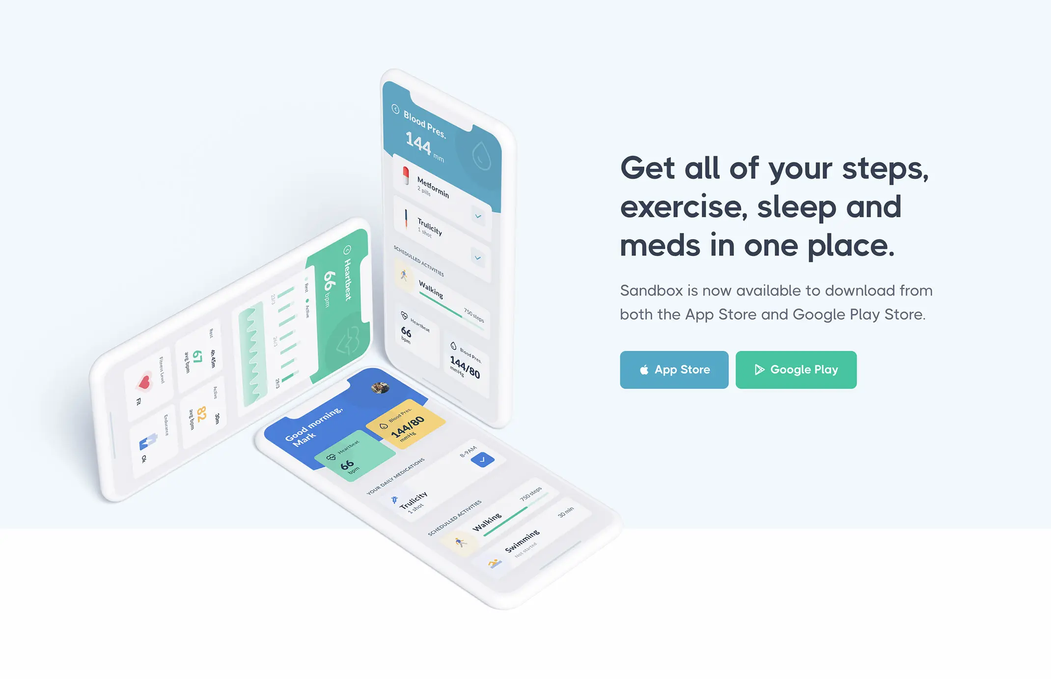 subtitle: "Sandbox is available to download from both App Store and Google Play Store."