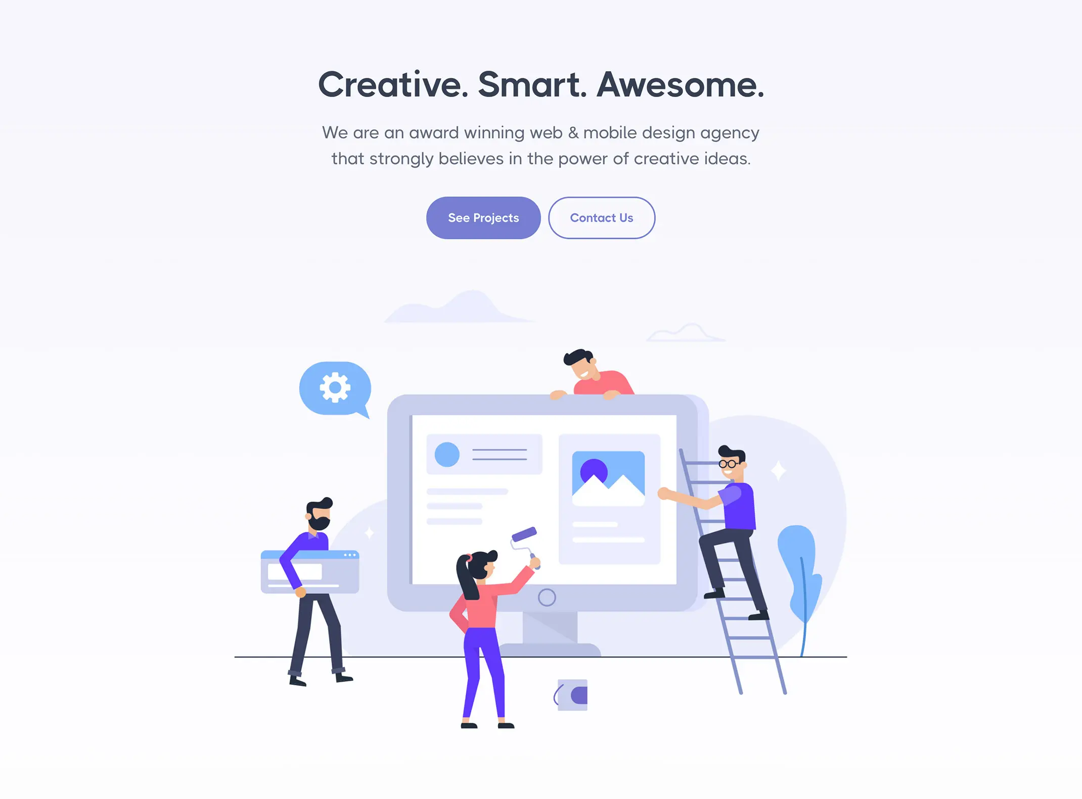 subtitle: "We are an award winning web & mobile design agency that strongly believes in the power of creative ideas."